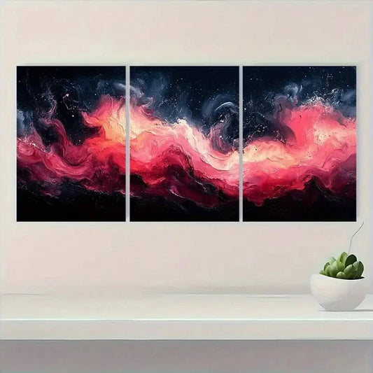 3pcs Vibrant Red & Black Painting Metal Print Ready to Hang Art