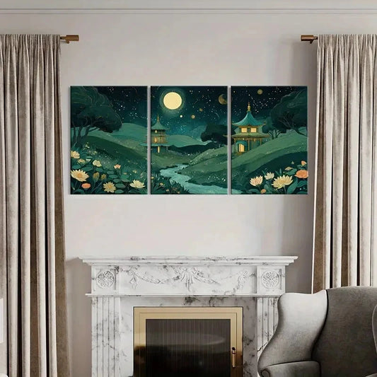 3pcs Vibrant Night Enchanted Moonlit Forest Metal Print Ready to Hang Art