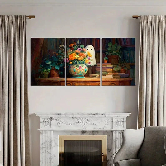 3pcs Artistic Floral Arrangement Ghostly Figure Metal Print Ready to Hang Art