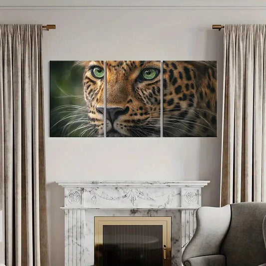 3pcs Set of Leopard Jungle-Themed Animal Metal Print Ready to Hang Art