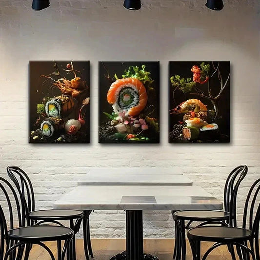 3pcs Gourmet Sushi Cuisine Aesthetic Perfect Wall Art Set Canvas Framed 40x60cm - High Quality Print 100% Australian Made Wall Canvas Ready to Hang