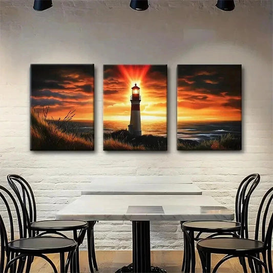 3pcs Lighthouse Warm Sunset Glow Ocean Perfect Wall Art Set Canvas Framed 40x60cm - High Quality Print 100% Australian Made Wall Canvas Ready to Hang