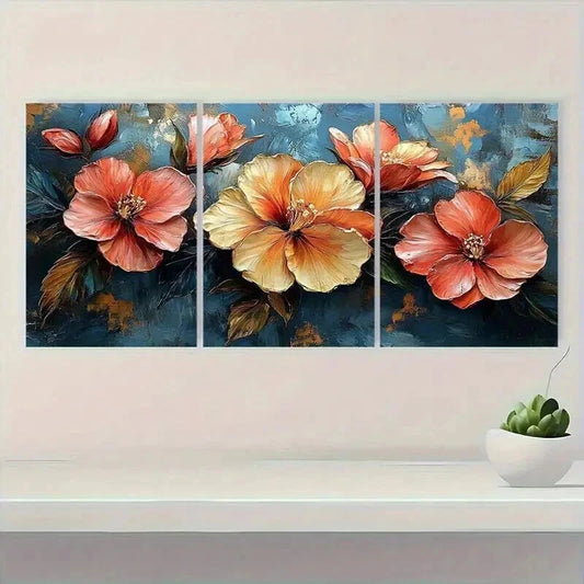 3pcs Vibrant Tropical Abstract Flower Prints Wall Art Set Canvas Framed 40x60cm - High Quality Print 100% Australian Made Wall Canvas Ready to Hang