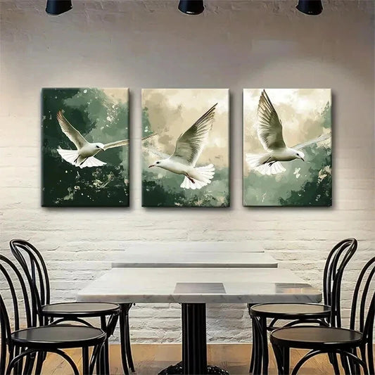 3pcs Soaring Seagull Peaceful Flight Perfect Wall Art Set Canvas Framed 40x60cm - High Quality Print 100% Australian Made Wall Canvas Ready to Hang