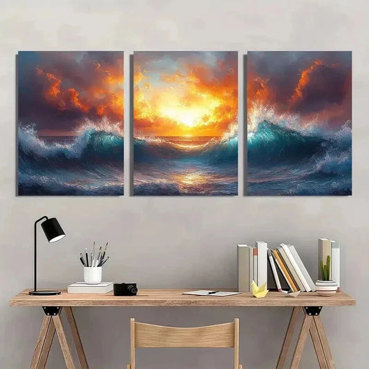 3pcs Abstract Depiction Of Ocean Waves Wall Art Set Canvas Framed 40x60cm - High Quality Print 100% Australian Made Wall Canvas Ready to Hang