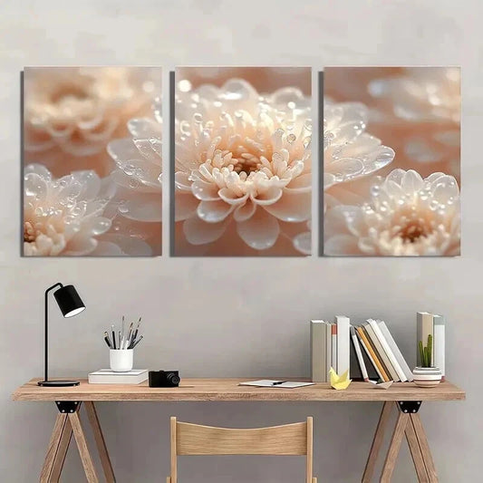 3pcs White Chrysanthemums with Water Droplets Wall Art Set Canvas Framed 40x60cm - High Quality Print 100% Australian Made Wall Canvas Ready to Hang