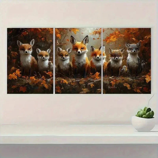 3pcs Fox Family in Vibrant Autumn Forest Wall Art Set Canvas Framed 40x60cm - High Quality Print 100% Australian Made Wall Canvas Ready to Hang