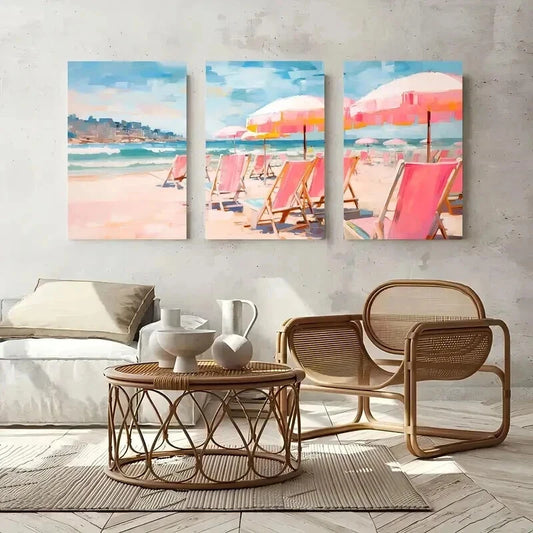 3pcs Umbrella Tents in Beach Decoration Wall Art Set Canvas Framed 40x60cm - High Quality Print 100% Australian Made Wall Canvas Ready to Hang