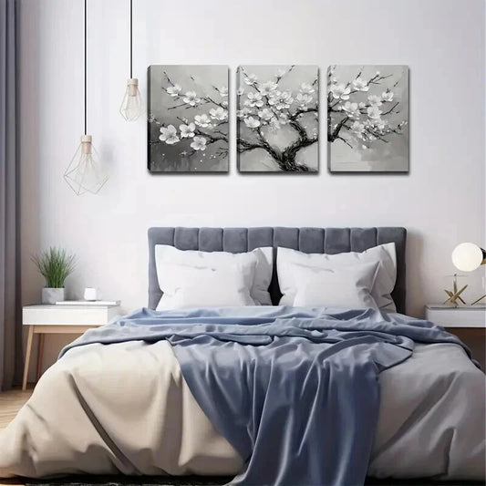 3pcs Serene Grey Tree with White Flowers Wall Art Set Canvas Framed 40x60cm - High Quality Print 100% Australian Made Wall Canvas Ready to Hang