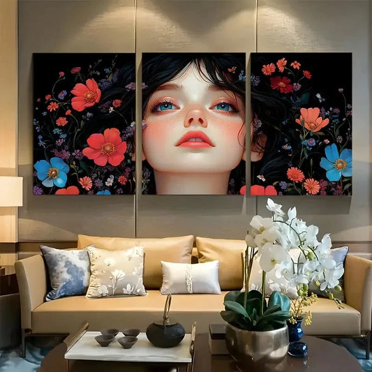 3pcs Fairycore Abstract Floral Botanical Woman Metal Print Ready to Hang Art
