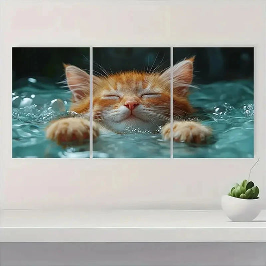 3pcs Adorable Kitten Serene Blue & Green Water Metal Print Ready to Hang Art