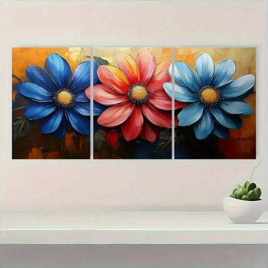 3pcs Vibrant Abstract Floral Colorful Modern Metal Print Ready to Hang Art
