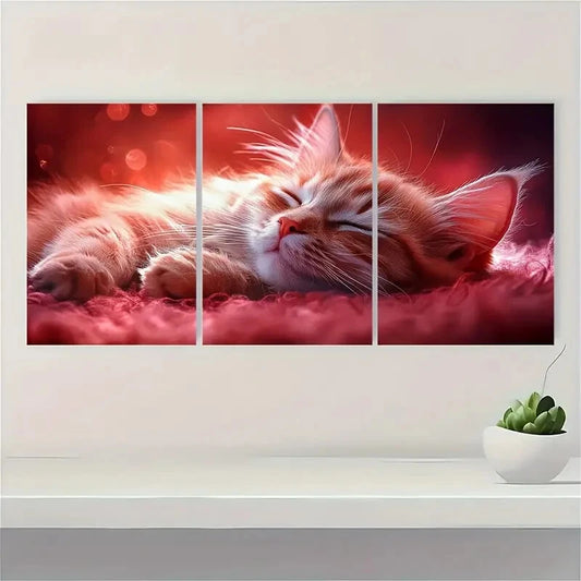 3pcs Charming Pink Cat Painting Metal Print Ready to Hang Art