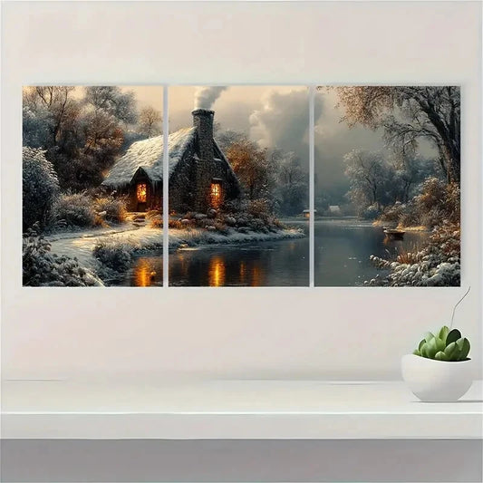 3pcs Rustic Sheep Cottage Landscape Metal Print Ready to Hang Art
