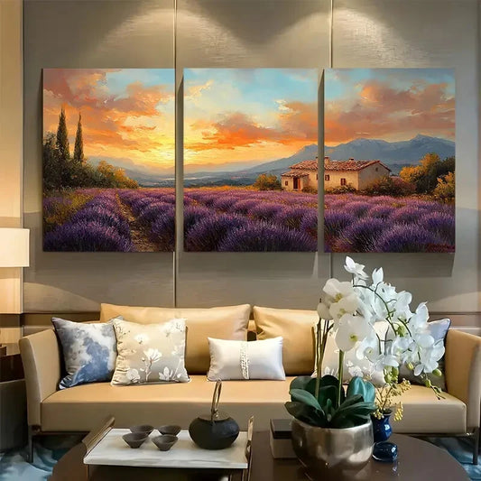 3pcs Beautiful Purple Lavender Fields Metal Print Ready to Hang Art