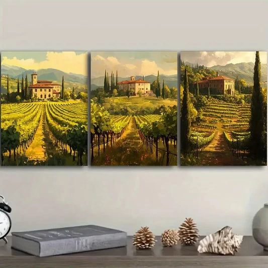 3pcs Italian Vineyard Frescoes Metal Print Ready to Hang Art