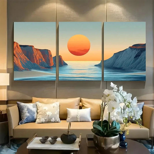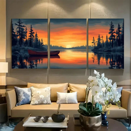 3pcs Twilight Lake Wall Art Serene Sunset Metal Print Ready to Hang Art