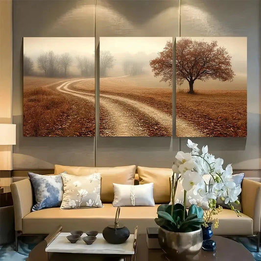 3pcs Rustic Country Path with Trees Metal Print Ready to Hang Art
