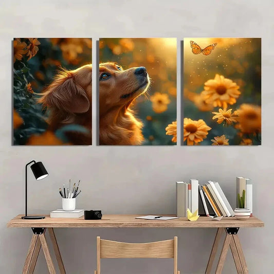 3pcs Golden Retriever Daisies & Butterflies Metal Print Ready to Hang Art