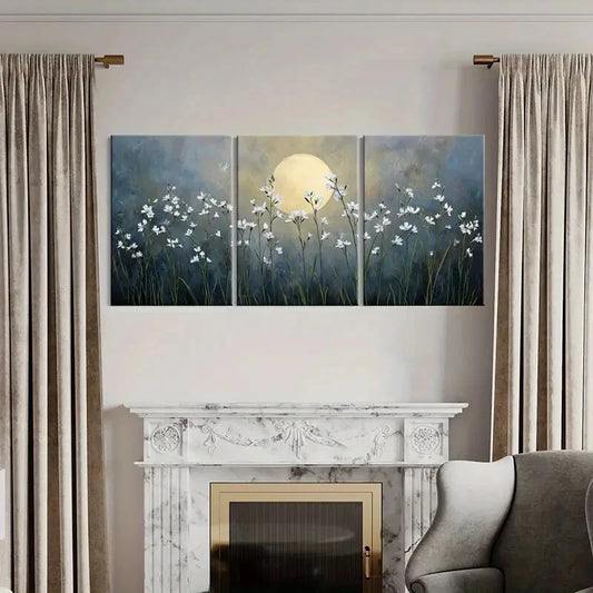 3pcs White Flowers & Night Sky Tranquil Nature Metal Print Ready to Hang Art