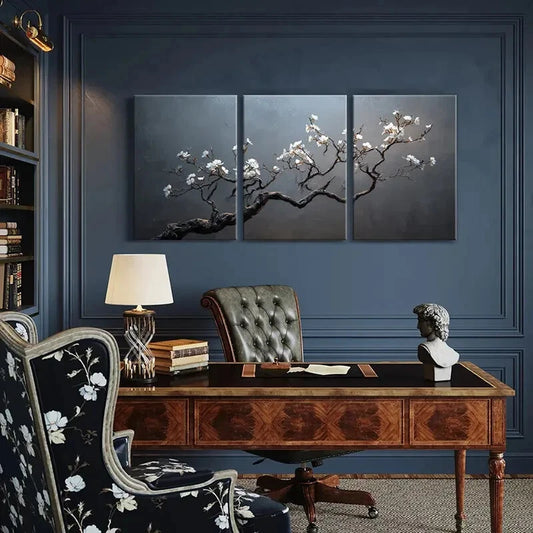3pcs Artistic Blossom Branch with White Flowers Metal Print Ready to Hang Art