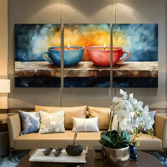 3pcs Unique Teacup Candles watercolor Metal Print Ready to Hang Art
