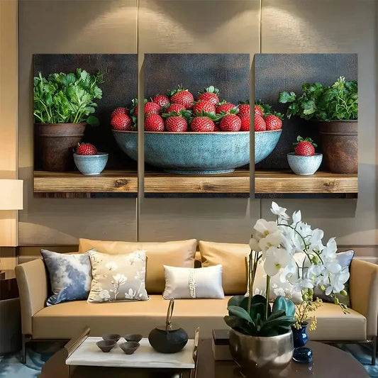 3pcs Fresh Strawberries Fruit Of The Spirit Metal Print Ready to Hang Art