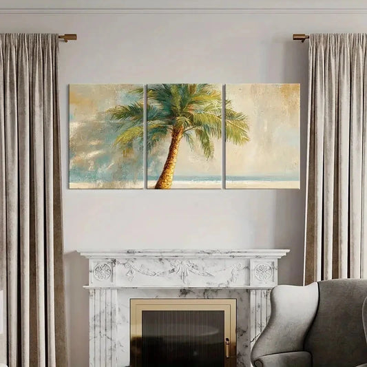 3pcs Tropical Palm Tree Vibrant Beach Scene Metal Print Ready to Hang Art