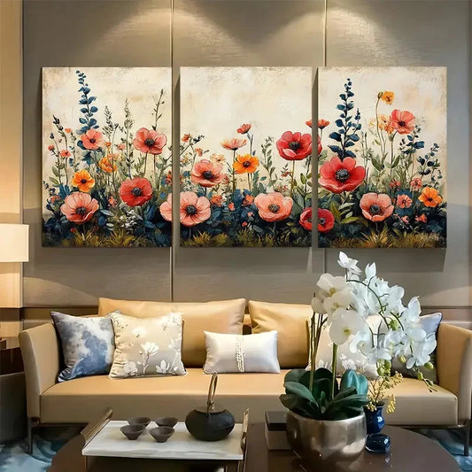 3pcs Boho Rustic Bright Botanical Garland Metal Print Ready to Hang Art