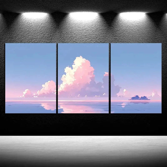3pcs Beautiful Sky White Clouds Metal Print Ready to Hang Art
