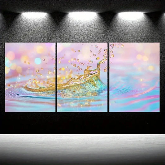 3pcs Beautiful Waves Colourful Water Metal Print Ready to Hang Art