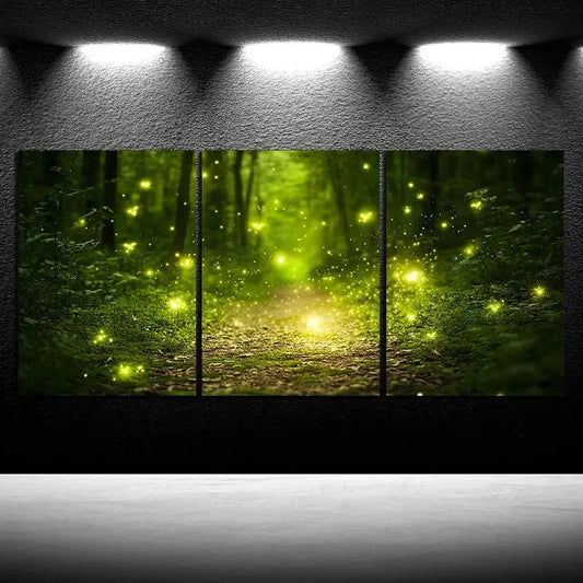 3pcs Fireflies in the Forest Greenery Metal Print Ready to Hang Art