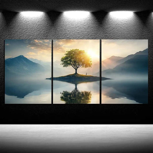 3pcs Trees on The Island Sunrise Metal Print Ready to Hang Art