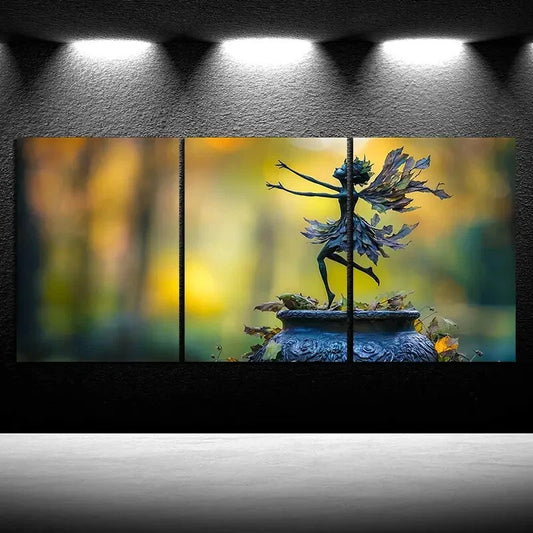 3pcs Leaf Girl Dancing in the Forest Fantasy Metal Print Ready to Hang Art