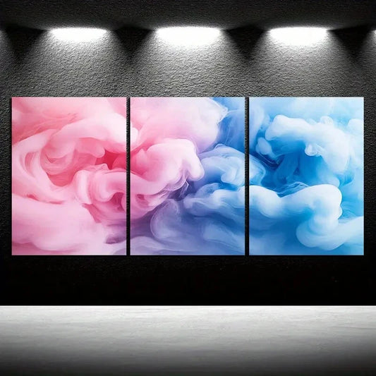 3pcs Beautiful Lines Colourful Pink & Blue Metal Print Ready to Hang Art