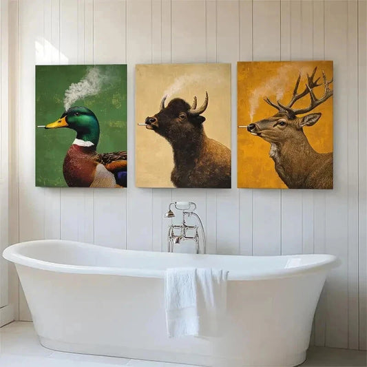 3pcs Vintage Animal Retro Style Triptych Perfect Wall Art Set Canvas Framed 40x60cm - High Quality Print 100% Australian Made Wall Canvas Ready to Hang