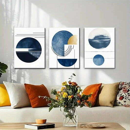 3pcs Modern Geometric Abstract Blue Perfect Wall Art Set Canvas Framed 40x60cm - High Quality Print 100% Australian Made Wall Canvas Ready to Hang