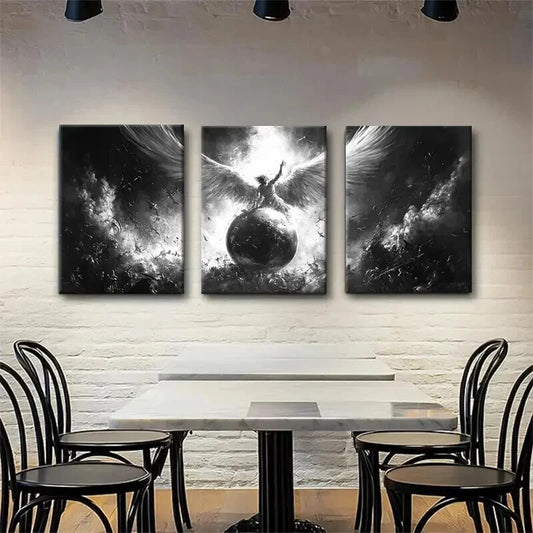 3pcs Angelic Warrior Black And White Perfect Wall Art Set Canvas Framed 40x60cm - High Quality Print 100% Australian Made Wall Canvas Ready to Hang