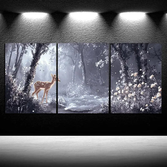 3pcs Charming Elk Forest Trio Metal Print Ready to Hang Art