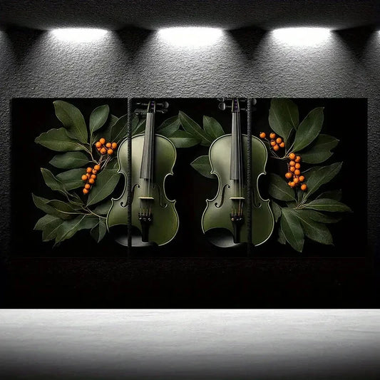 3pcs Chic Cello Trio Black & Green Metal Print Ready to Hang Art