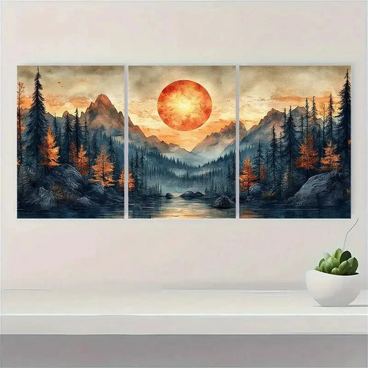 3pcs Abstract Sun Mountain Forest Nature Metal Print Ready to Hang Art