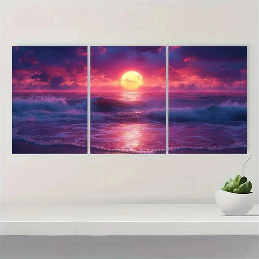 3pcs Synthwave Sunset Ocean Waves Metal Print Ready to Hang Art