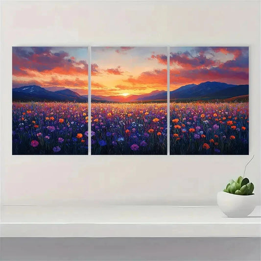 3pcs Sunset Wildflower Textured Metal Print Ready to Hang Art
