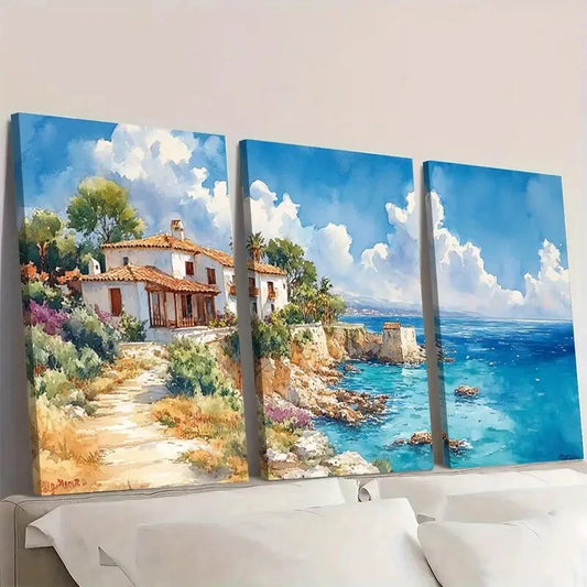 3pcs Santorini Greece Mediterranean Coastal Metal Print Ready to Hang Art