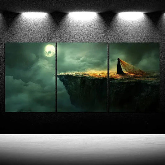 3pcs The Elephant Under The Moon Metal Print Ready to Hang Art