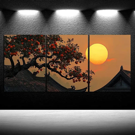 3pcs The Persimmon Tree on The Eaves Metal Print Ready to Hang Art