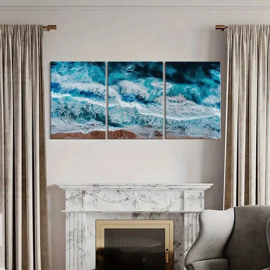 3pcs Large Aerial Beach Modern Ocean Waves Metal Print Ready to Hang Art