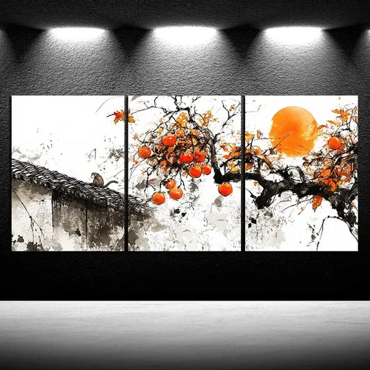 3pcs The Tree On The Eaves Orange Sun Metal Print Ready to Hang Art