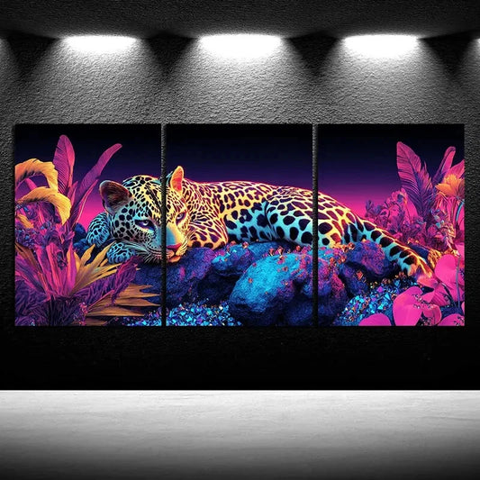 3pcs The Leopard Pink Themed Jungle Metal Print Ready to Hang Art