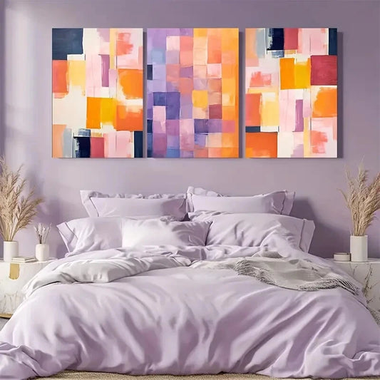 3pcs Vibrant Purple and Pink Modern Abstract Metal Print Ready to Hang Art